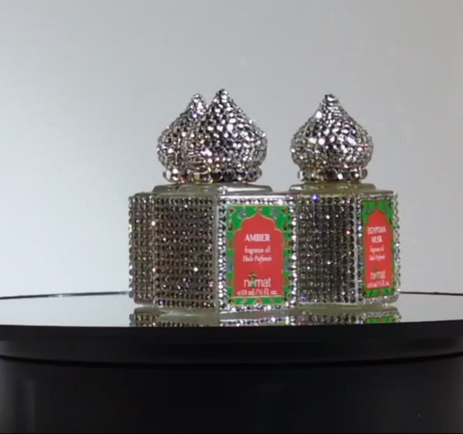 The notes are Egyptian Musk, powdery notes, and citrus. These are splash bottles and the size is 10ml. This is a concentrated perfume oil - a little goes a long way. Nemat oils are vegan and cruelty-free.